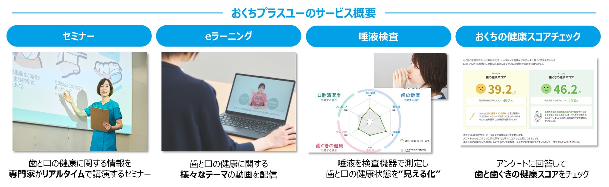 2022年7月より、当社は企業向けに歯と口の健康から従業員の豊かな毎日を実現する健康経営支援サービス「おくちプラスユー」の提供を開始しました。当サービスで提供している、セミナーや唾液検査、eラーニング動画などを、健康経営に取り組まれている企業を中心にご導入いただき、2024年12月に提供社数が累計100社、提供従業員数が累計5万人を突破しました。