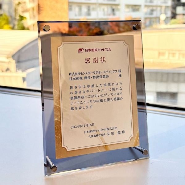 モンスターラボホールディングス、日本郵政キャピタル主催の事業者交流会にて感謝状を受領