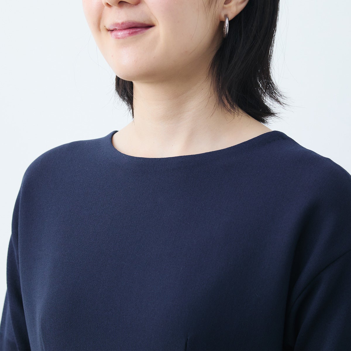 シンプルでフラットに仕上がった襟元は、まるでブラウスのよう。