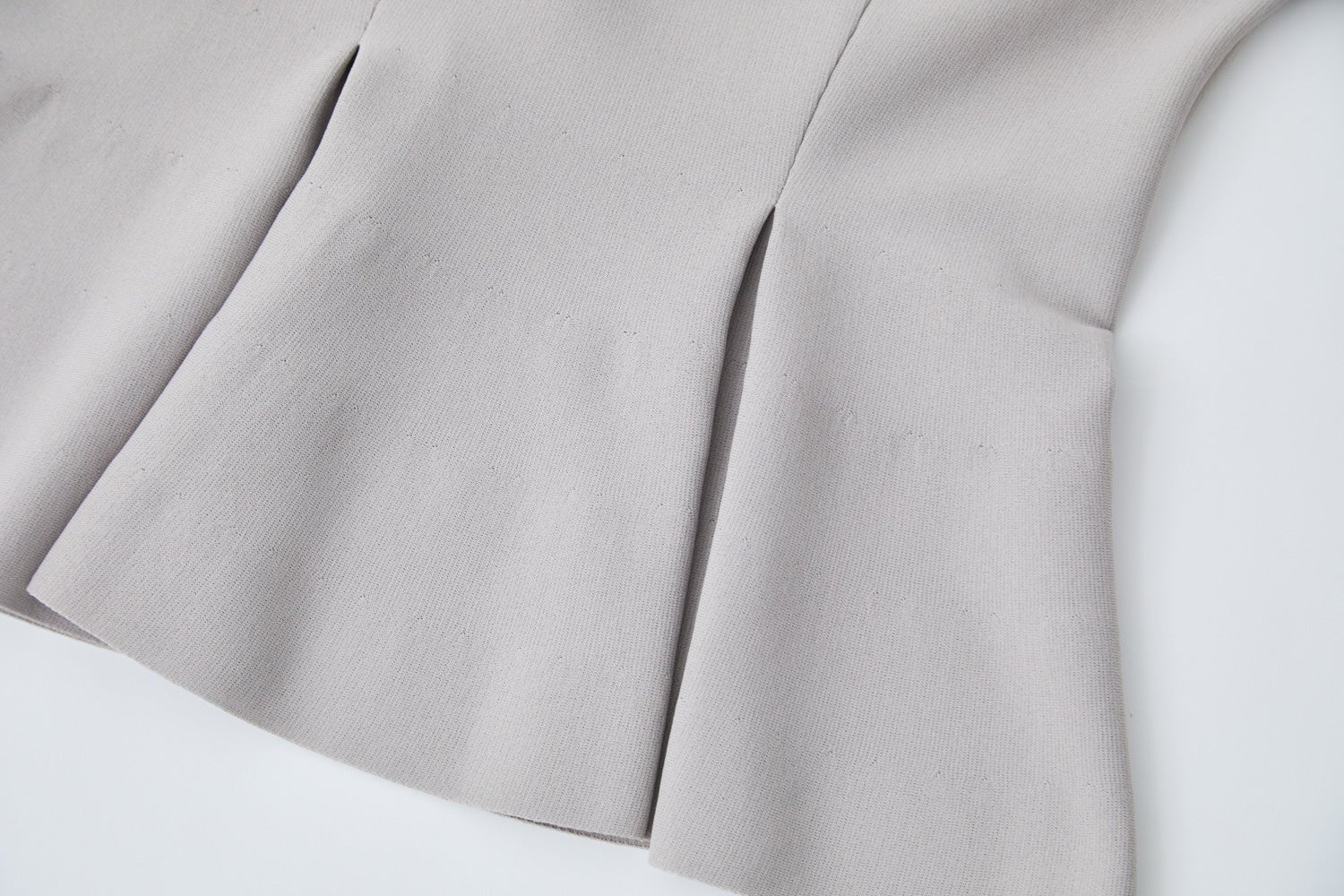 そんなペプラムトップスを、美しい光沢と弾力をあわせ持つ、塚野メリヤスのミラノリブならではの特性を生かしてお作りしました。