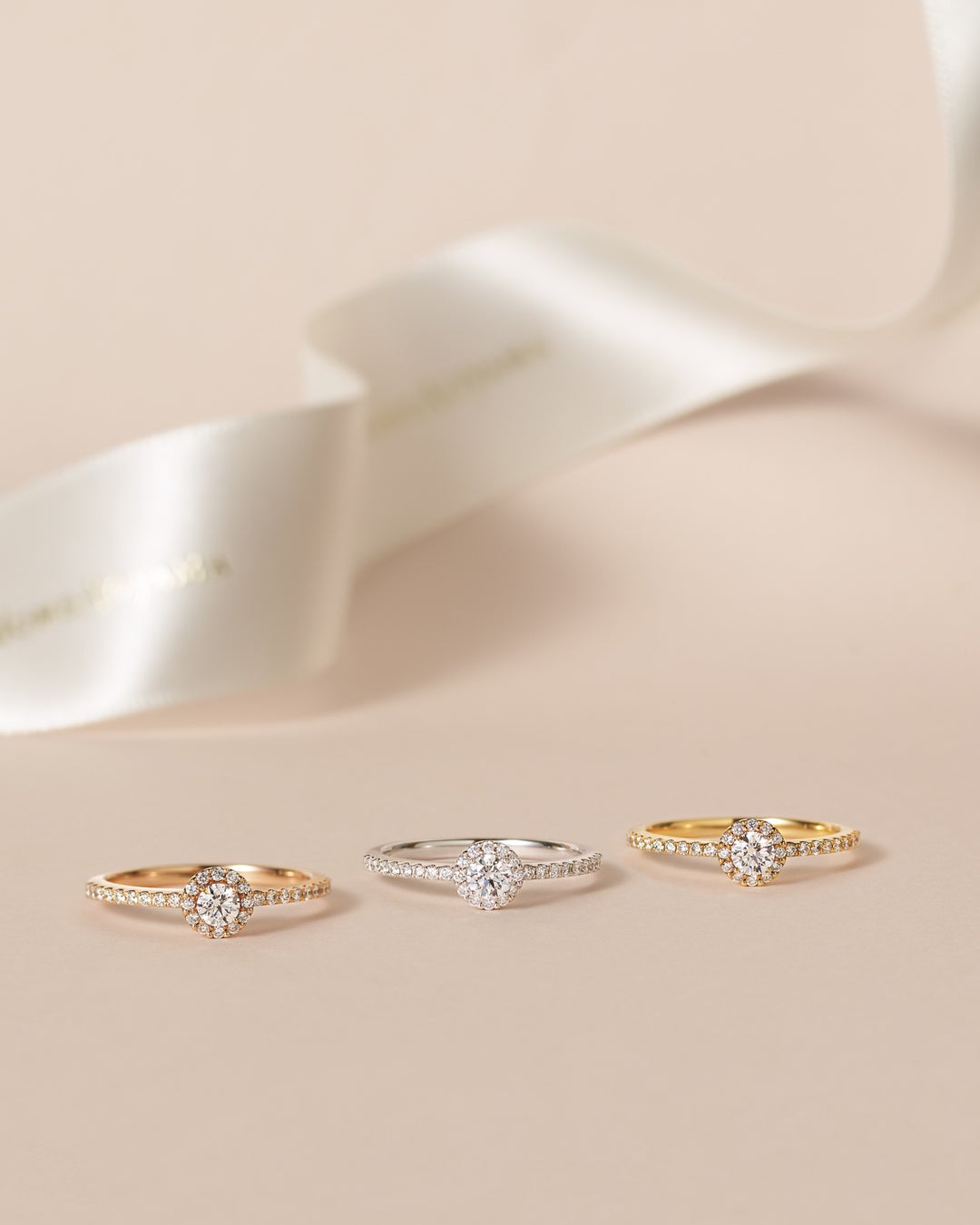 定番のプラチナ、ファッション性の高いイエローゴールド、フェミニンなピンクゴールドの3素材から、お好みに合わせてお選びいただけます。
