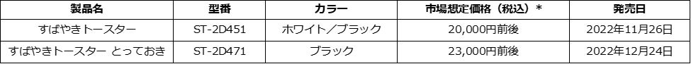 ※すばやきトースター とっておき(ST-2D471)はシロカ直販サイト限定カラーです。
