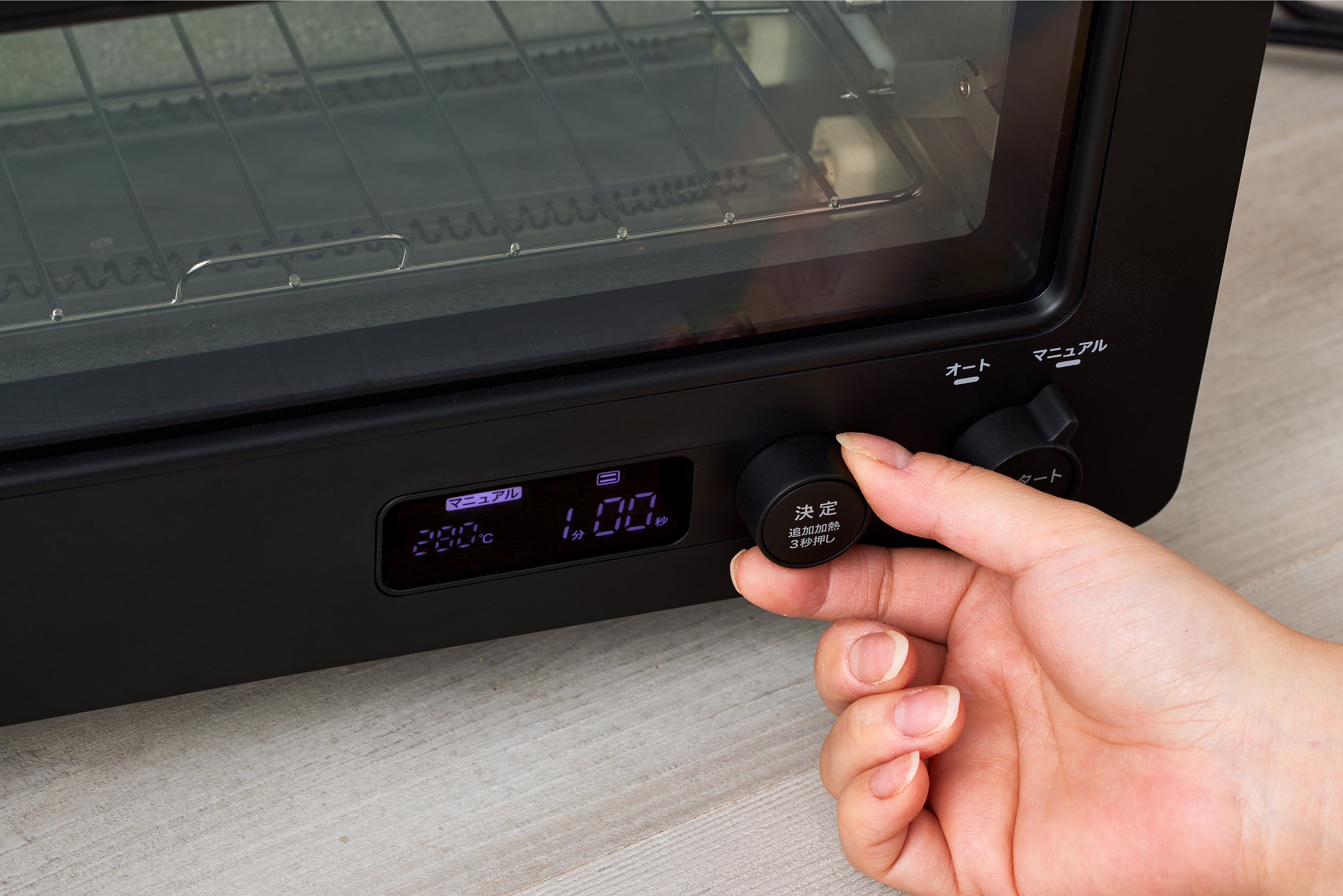 本製品は10cmという庫内の高さで、食パン1/2斤サイズまで対応。マニュアルモードの温度範囲は40℃~280℃まで、時間は最大90分までと、メニューに合わせて幅広い設定が可能です。パンはもちろん、庫内の高さを活かしたお餅や、設定温度と時間の幅広さを活かしたオーブン料理など、多彩な料理に活躍します。