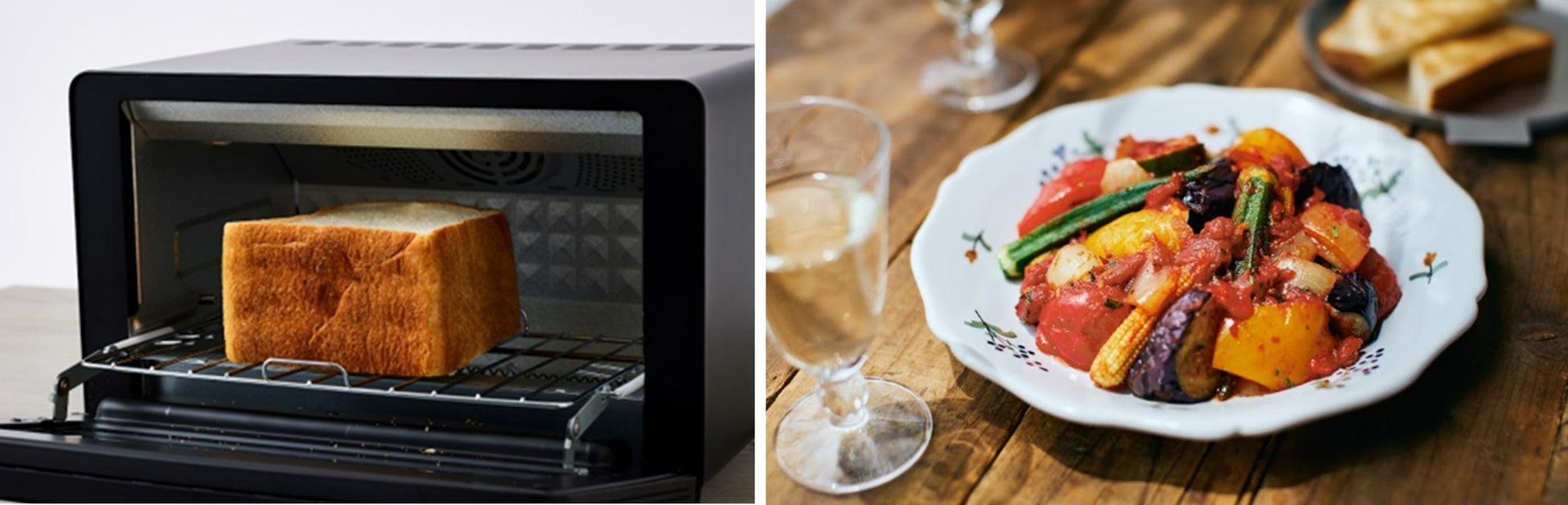 一般的なトースターと比較すると、パン中心部の水分含有率は2倍になり、外はサクサク、中はモチモチの理想的なトーストに。庫内の温度を均一に保つことで、焼きムラなく仕上がります。