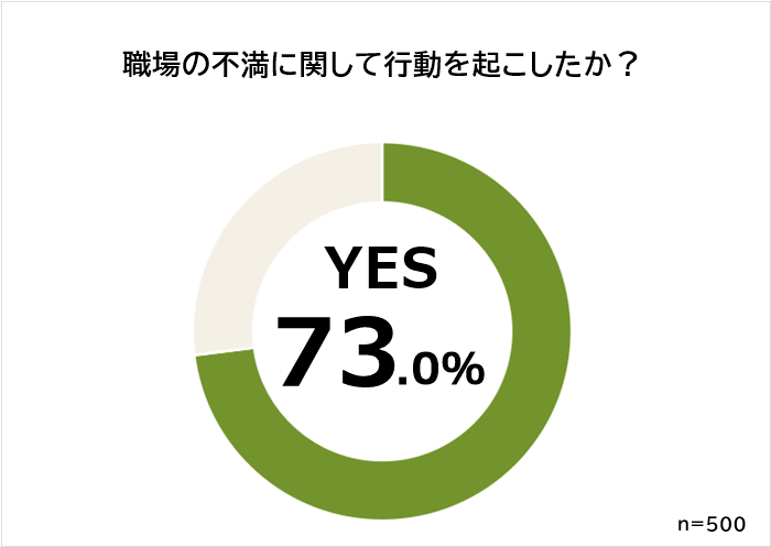 「不満に対して行動を起こしたかどうか」を聞いたところ、7割以上の人が「行動を起こした」と答えています。