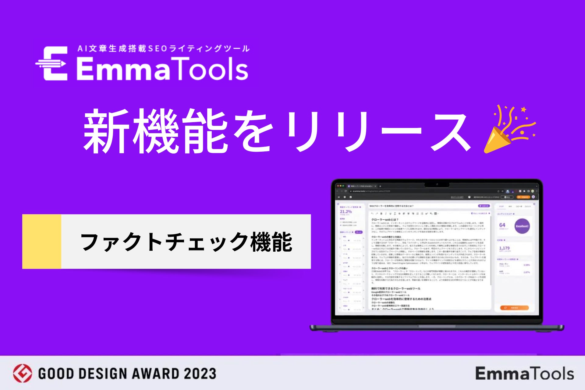 生成AI×SEOライティングツールのEmmaTools(エマツールズ)は、新たにファクトチェック機能をリリースしました。