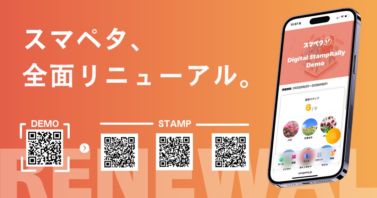 これまで、スタンプラリーや周遊型イベントをはじめ、あらゆる規模のイベントのデジタル化をサポートしてきた「スマペタ」は、イベント主催者様からの「参加者にとってより使いやすく、満足度の高いイベントにしたい」というご要望と、昨今のイベント開催形式の多様化に対応するため、このたび機能とデザインを大幅に刷新いたしました。