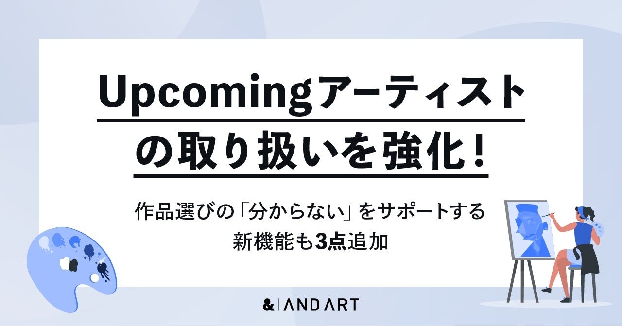 日本初、アートの小口投資プラットフォーム「ANDART」を運営する株式会社ANDART(本社:東京都港区、代表取締役CEO:松園詩織)は、アップカミングアーティストの取り扱い強化と、それに伴いUPCOMINGタブ・デイリーランキングページ・ソート機能の充実など新機能を3点追加したことをお知らせいたします。