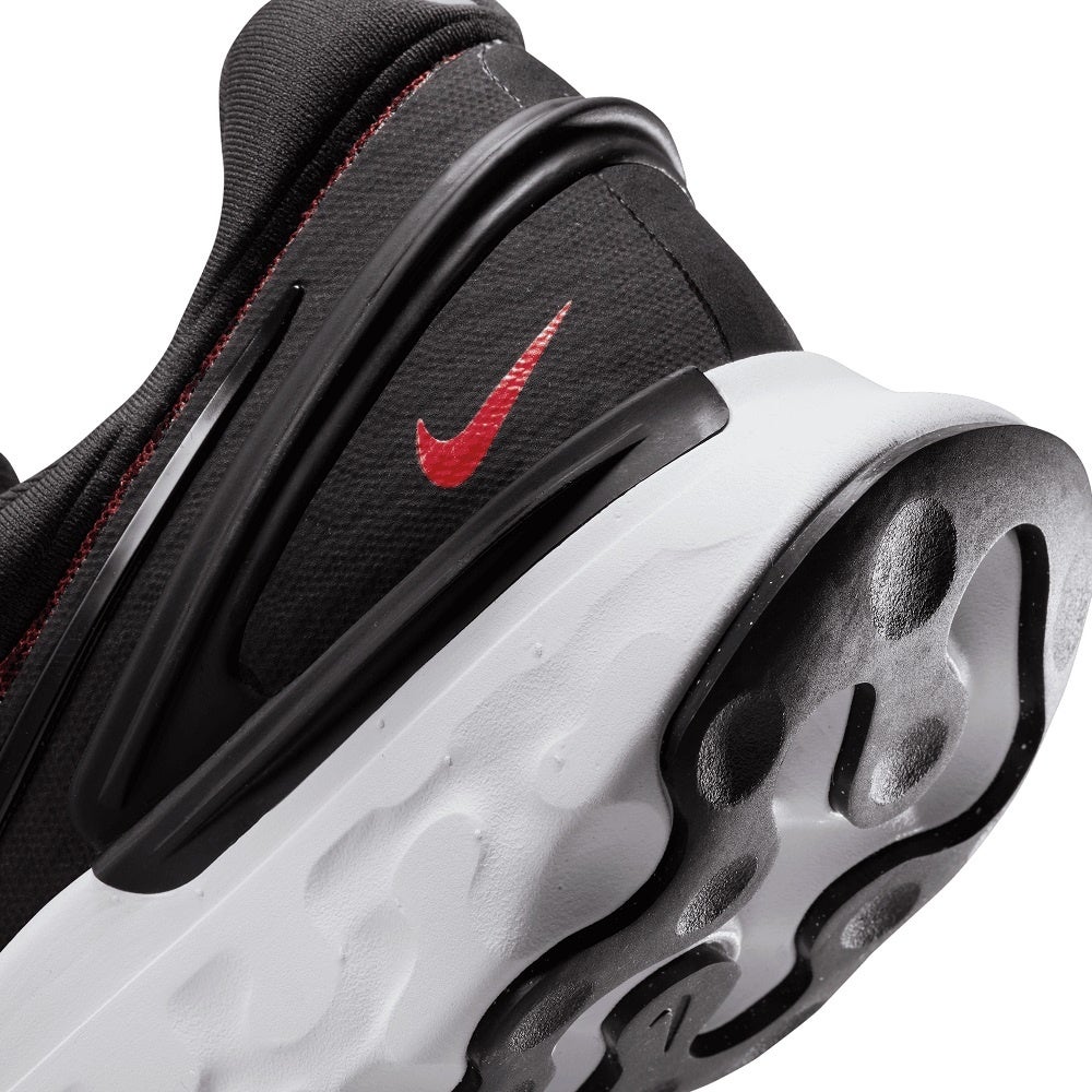 Nike Reactテクノロジーが、足を踏み出すたびに柔らかく高反発な履き心地を提供。 幅広の底が着地時の安定感が向上。