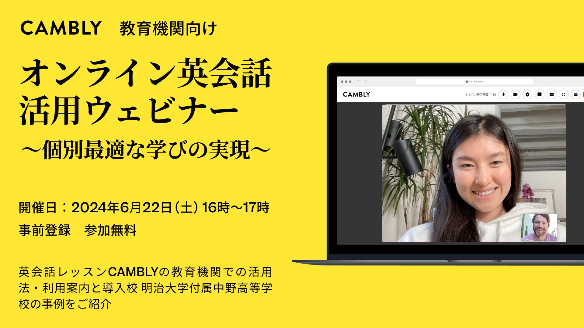 オンライン英会話サービスの授業導入や、CAMBLYのネイティブ講師との高品質なレッスン利用にご興味がある方は、ぜひご参加ください。