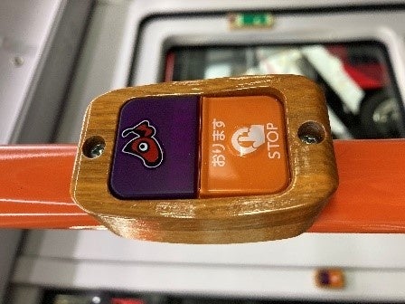 ・車内でも座席シート、降車ボタン、つり革に「あかべぇ」デザインを施す
