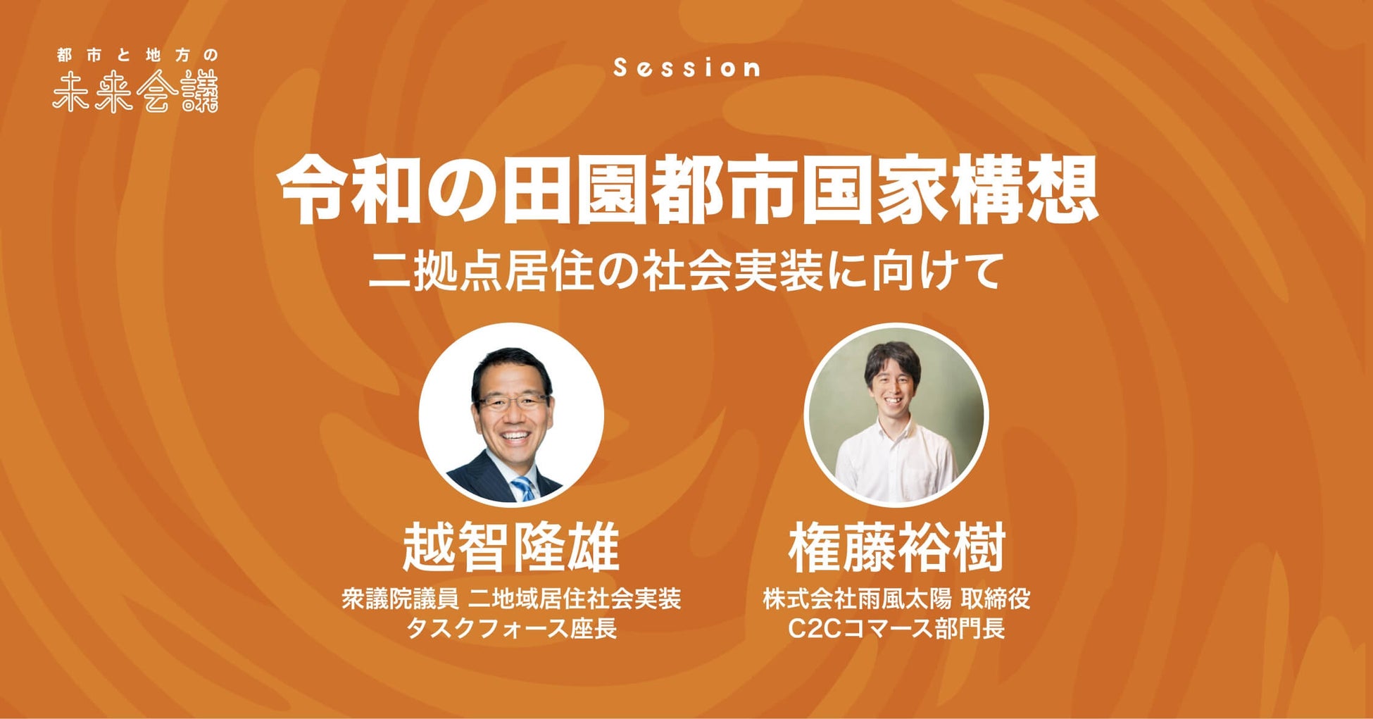 新型コロナウイルス感染拡大の影響で耳にすることも多くなった「2拠点居住」都心での仕事を続けつつ、地方に暮らしの軸足を移すという生活は、ライフスタイルの新たな選択肢として広がりつつあります。本セッションでは、二地域居住社会実装タスクフォースの座長を務める、衆議院議員の越智隆雄さんから、その意義とメリット、そして行政として、いかに社会実装を推進していくかをお話いただきます。