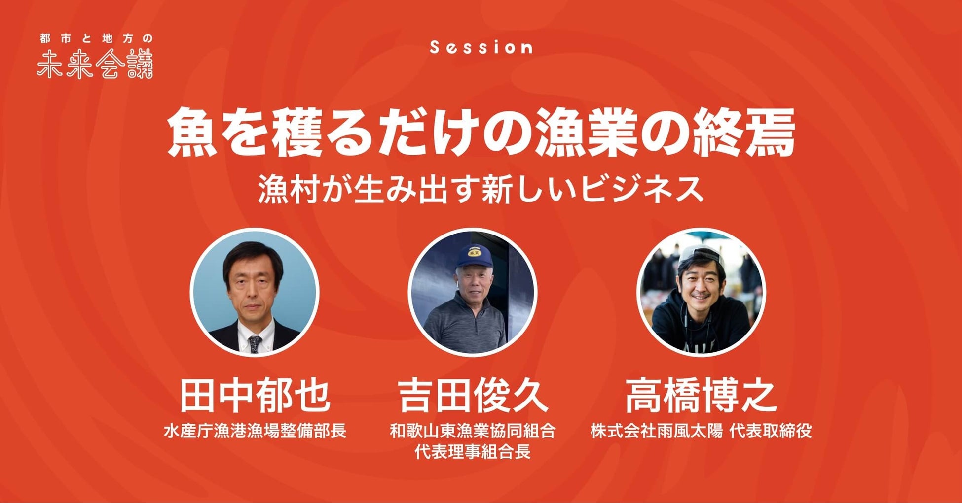 昨今、SDGsの目標14のように海の資源を守る取り組みが注目されるなか、漁村では、海や漁村の地域資源の価値や魅力を活用する”海業”という取り組みが始まっています。漁村のにぎわい、地域のにぎわいを取り戻すために何が必要なのか。和歌山東漁業協同組合 代表理事組合長の吉田俊久さんと、水産庁漁港漁場整備部長の田中郁也さんから、事例も交えてお話いただきます。