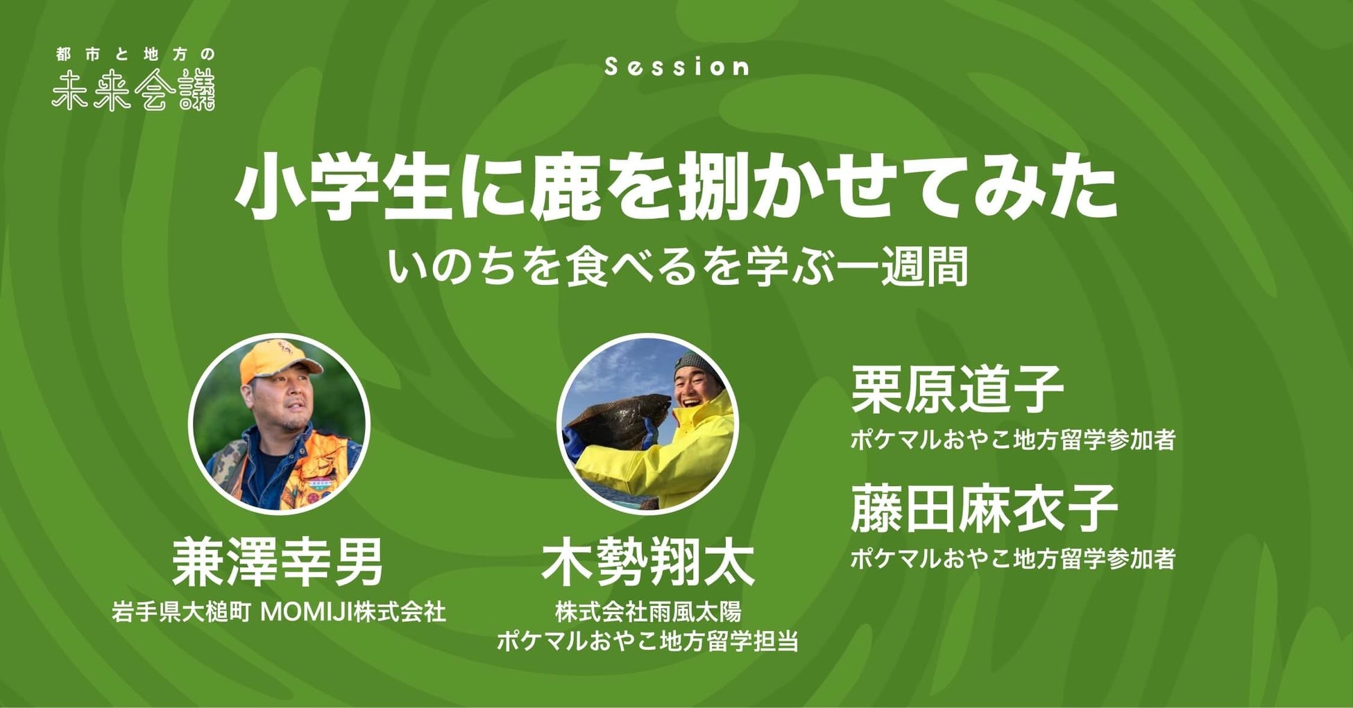2022年の夏のアクティビティでは、お子さんが鹿の狩猟に同行し、解体、調理までを体験しました。地方での滞在が教育に与える影響とは何か。プログラムを提供した猟師の兼澤幸男さんと、プログラムに参加した栗原さん、藤田さんからお話いただきます。