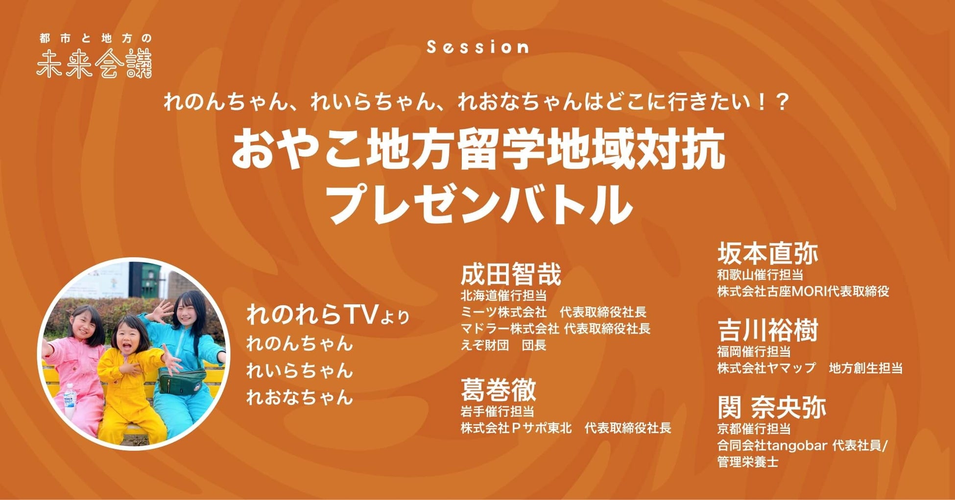 ◆ 15:50~16:20 れのんちゃん、れいらちゃん、れおなちゃんはどこに行きたい!? おやこ地方留学地域対抗プレゼンバトル