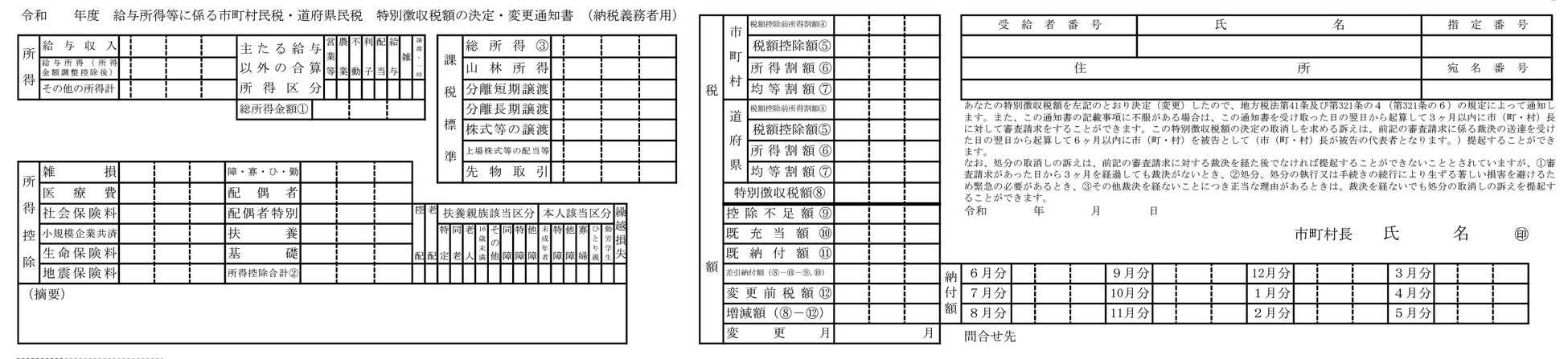 ▲給与所得等に係る特別徴収税額の決定・変更通知書(納税義務者用)「様式(3号別表)」より抜粋(https://www.soumu.go.jp/main_content/000397112.pdf)