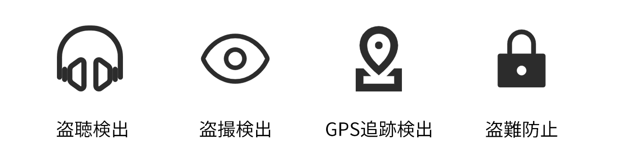 - 3つのモード搭載・盗聴/盗撮器を見逃さない