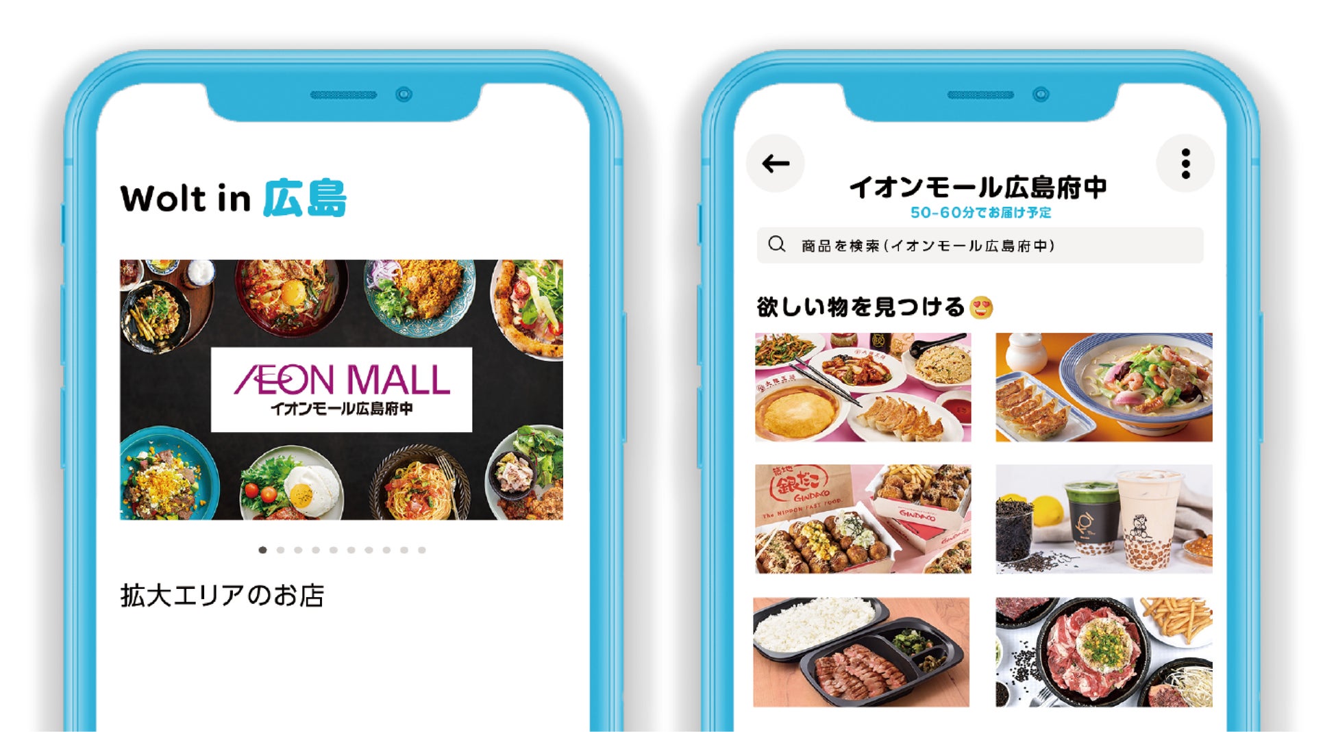 おもてなしデリバリー Wolt、イオンモール広島府中で買いまわりサービスの実証実験を開始!モール内の複数店舗の商品が一度にまとめて注文&配達可能に。