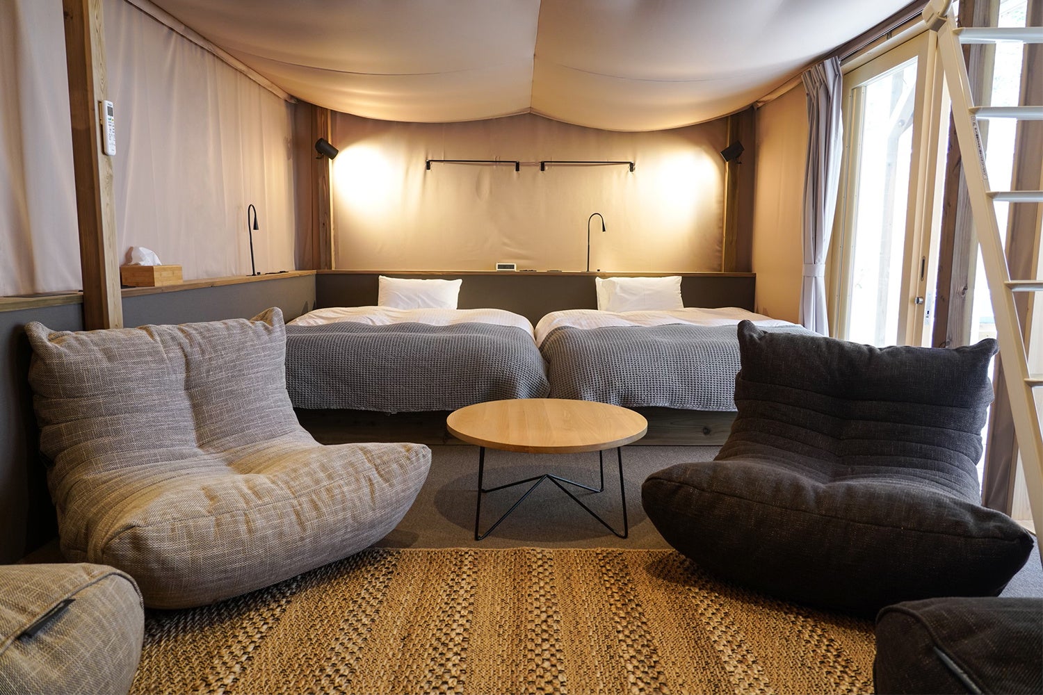 【2022年11月オープン】神奈川県初の全棟・源泉かけ流し温泉付きグランピング【THE BASE GLAMPING YUGAWARA】の3つの新客室