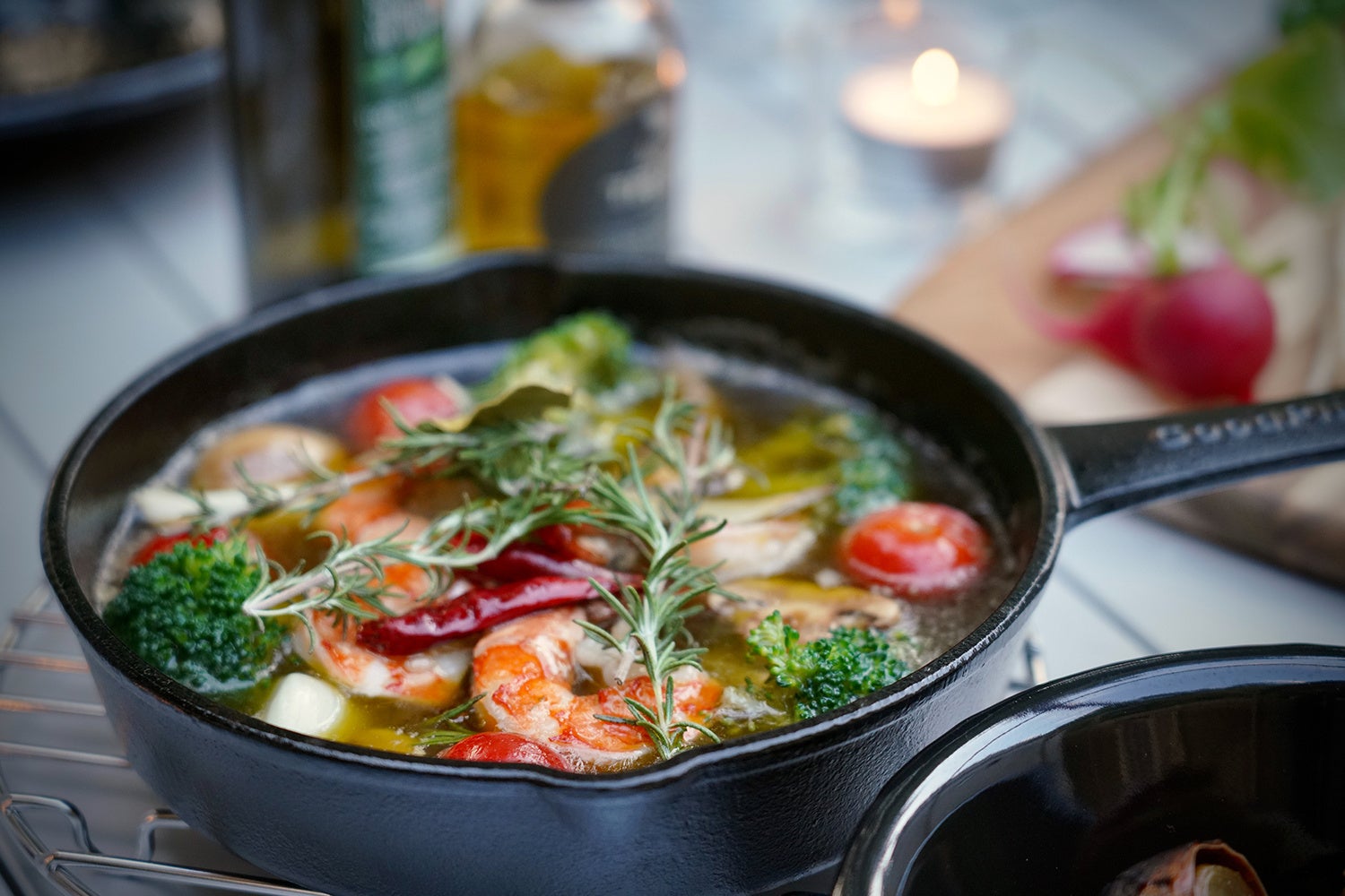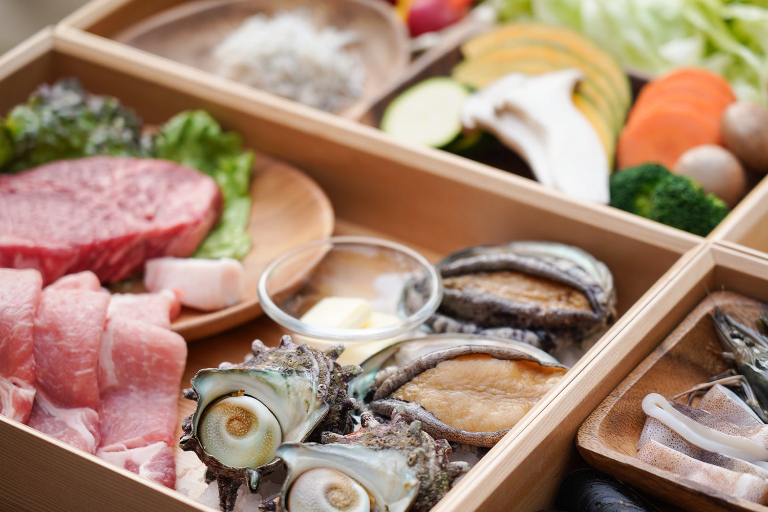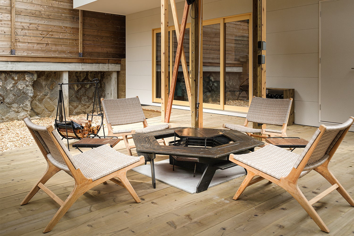 各棟専用のBBQスペースにご用意している焚き火台で、揺らめく炎の直火を使ってお肉を炙ったり、アヒージョを温めたり、手間いらずでありながらアウトドア感を楽しめるものをご用意しました。また、素泊りの場合はお好みの食材を持ち寄り、オリジナルBBQをお楽しみいただけます。ぱちぱちと音を立て揺らめく炎やじんわり伝わるぬくもり、臨場感たっぷりの雰囲気と共に神奈川・湯河原の新鮮な美味をご堪能ください。