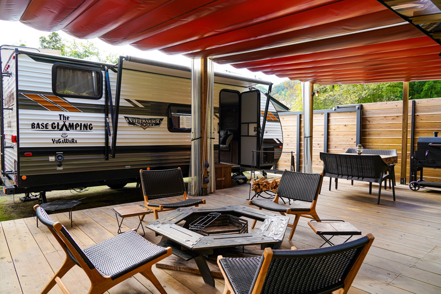 熱海や箱根にも近く海と山に囲まれたこの温泉郷に立地する「THE BASE GLAMPING YUGAWARA」