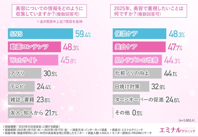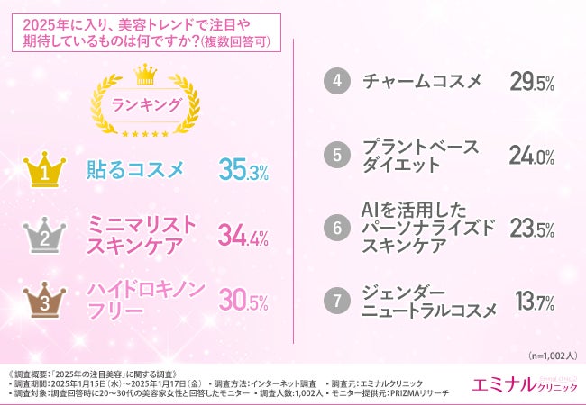 そこで今回、医療脱毛の「エミナルクリニック」は、美容家1,002人を対象に、「2025年最新美容」に関する調査を実施しました。