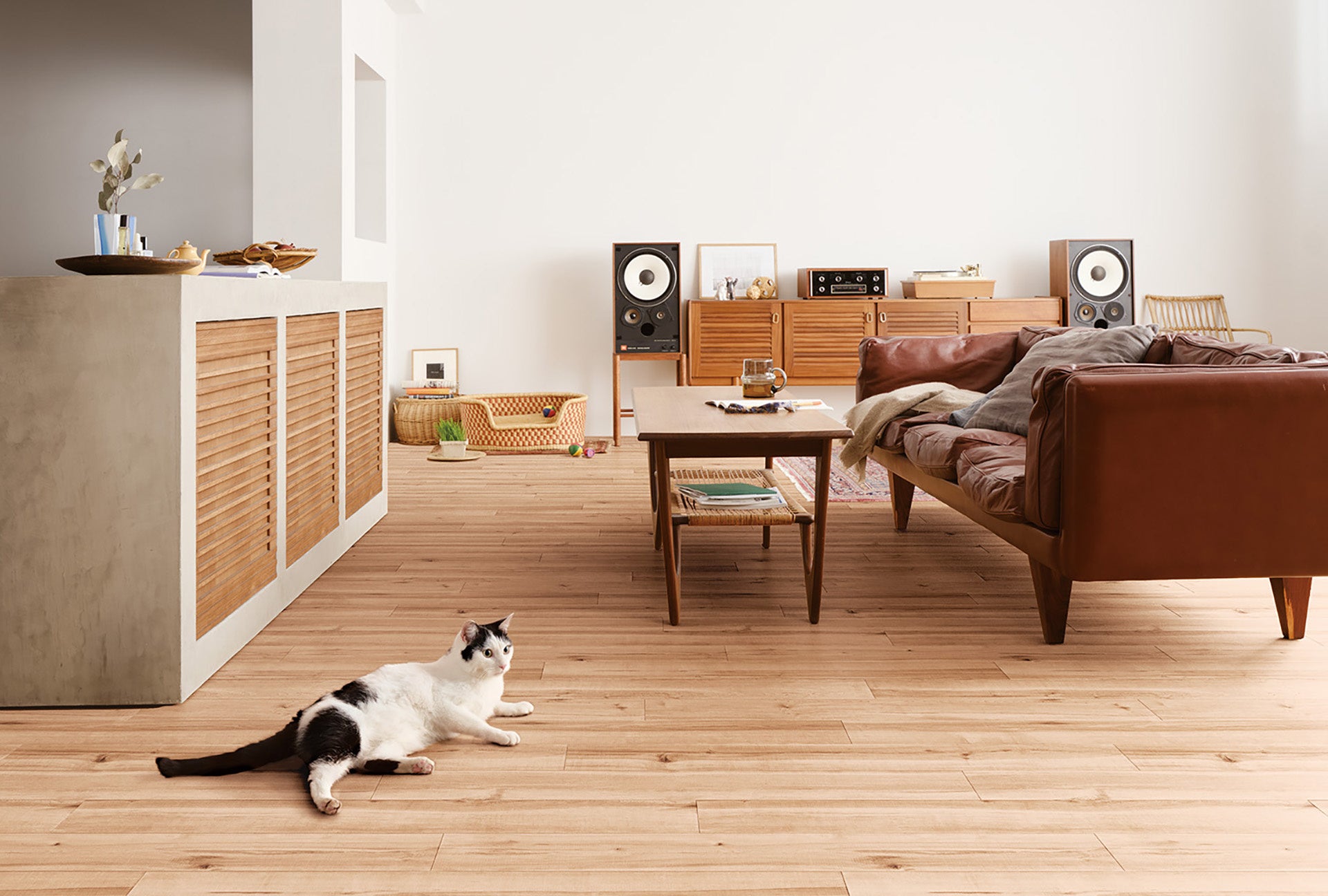 ペットにも⼈にもやさしい、快適な空間づくりを提案する床材