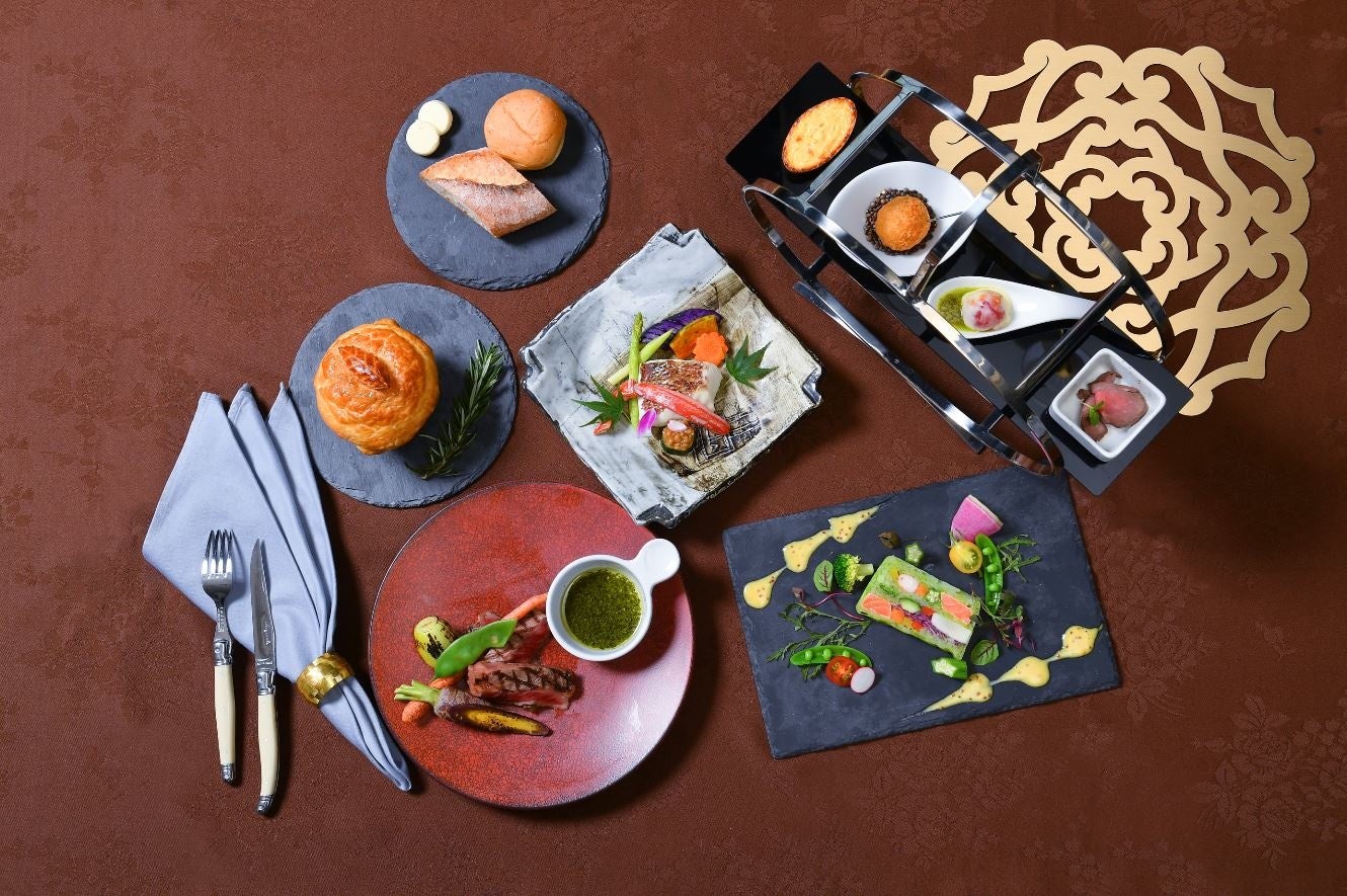プラチナウィーク期間中は18階イノベーティブフレンチ『スマイリーネプチューン』と鉄板焼『潮路』では特別ディナーとしてプラチナコースをご用意いたしました。前菜からメインまで、世界各国のお料理が続々と登場する特別コースをお召し上がりいただいた後は、会場を移して、世界中のスイーツをビュッフェ形式でご自由にお召し上がりいただく特別なスタイルでご提供いたします。