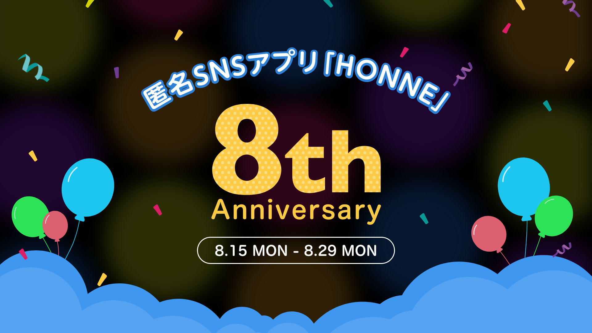 本音が言える匿名つぶやき&悩み相談アプリ「HONNE - ホンネ」がサービス開始から8周年を迎えました!