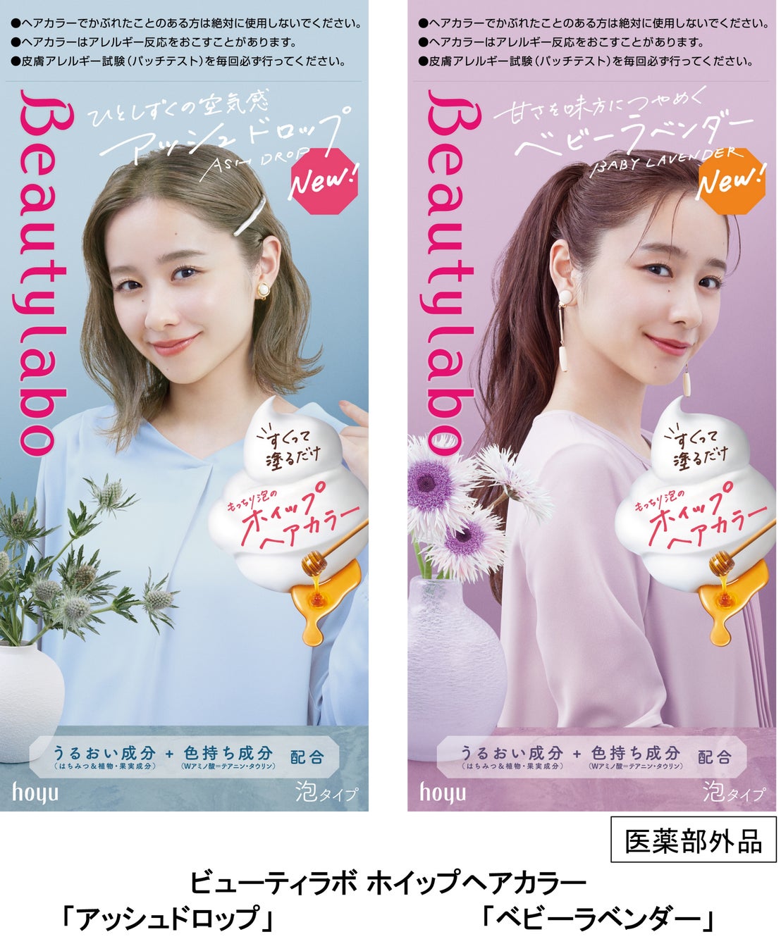 ホーユー株式会社(愛知県名古屋市)は、女性黒髪用ヘアカラーリングシリーズ「ビューティラボ ホイップヘアカラー」から、大人女性にオススメのこだわりニュアンスカラー新色2色「アッシュドロップ」「ベビーラベンダー」を2025年2月3日(月)より発売します。