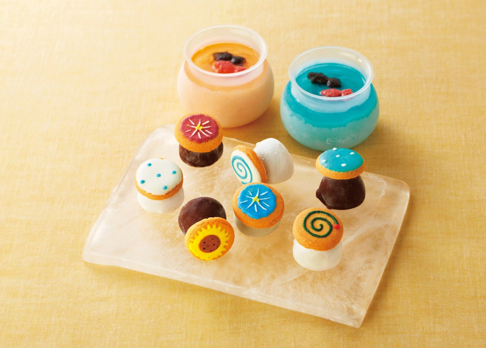 アイシングクッキーやマシュマロ、チョコレートなどカラフルで可愛らしい見た目で子供から大人まで楽しめる菓子をそろえる「アンファン」。金魚やヒマワリ、花火、蚊取り線香など「夏の景色」をアンファンらしく表現したアイスのギフトセットです。