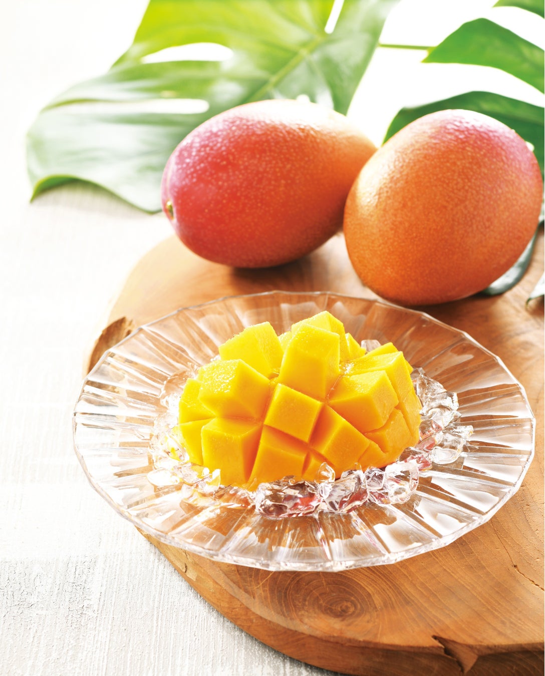 宮崎マンゴー発祥の地、西都(さいと)市の「完熟マンゴー」。果実に網をかけ、おいしく熟れて自然に落果するまで待つ「ネット収穫法」で収穫された希少な糖度17度以上かつ大玉(4L・510g以上)サイズを厳選しました。マンゴーの甘さ、芳醇な香り、色鮮やかな果肉が贅沢に楽しめる夏のおすすめギフトです。