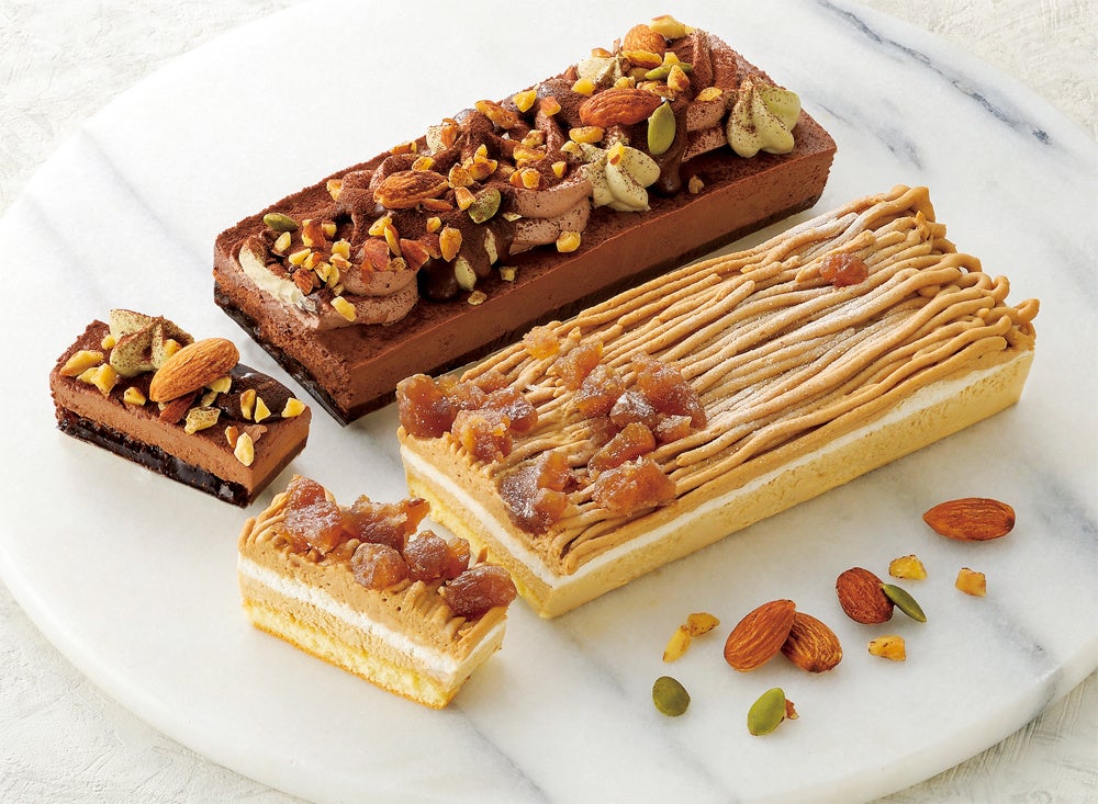 ラム酒香る大人の味わいのモンブランと食感が楽しい木の実のショコラケーキのセットです。
