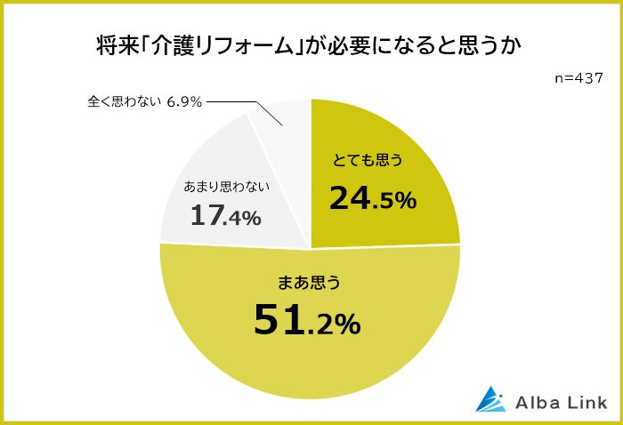 今回、株式会社AlbaLink( https://albalink.co.jp/)が運営する訳あり物件買取ナビ( https://albalink.co.jp/realestate/)は、30代以上の男女437人を対象に「介護リフォーム」についてアンケート調査を実施しました。