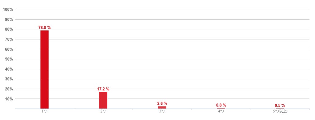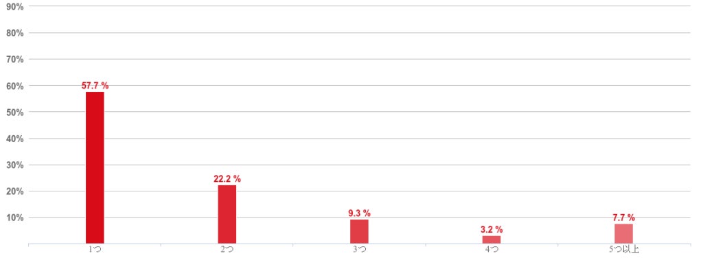 「1つ」が57.7%で圧倒的だったが、「2つ」との回答も22.2%集まった。なお、「5つ以上」も7.7%いた。
