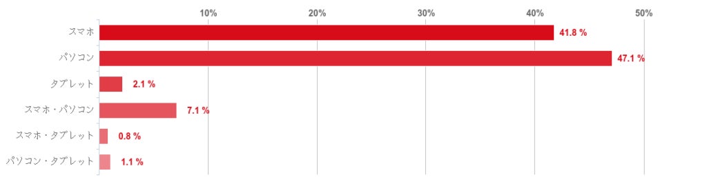パソコンのみで取引する人が47.1%で最も多かったが、スマホのみと回答した人も41.8%いた。なお、「スマホ・パソコン」など2種類以上の端末を組み合わせている人は全体の9%に留まった。