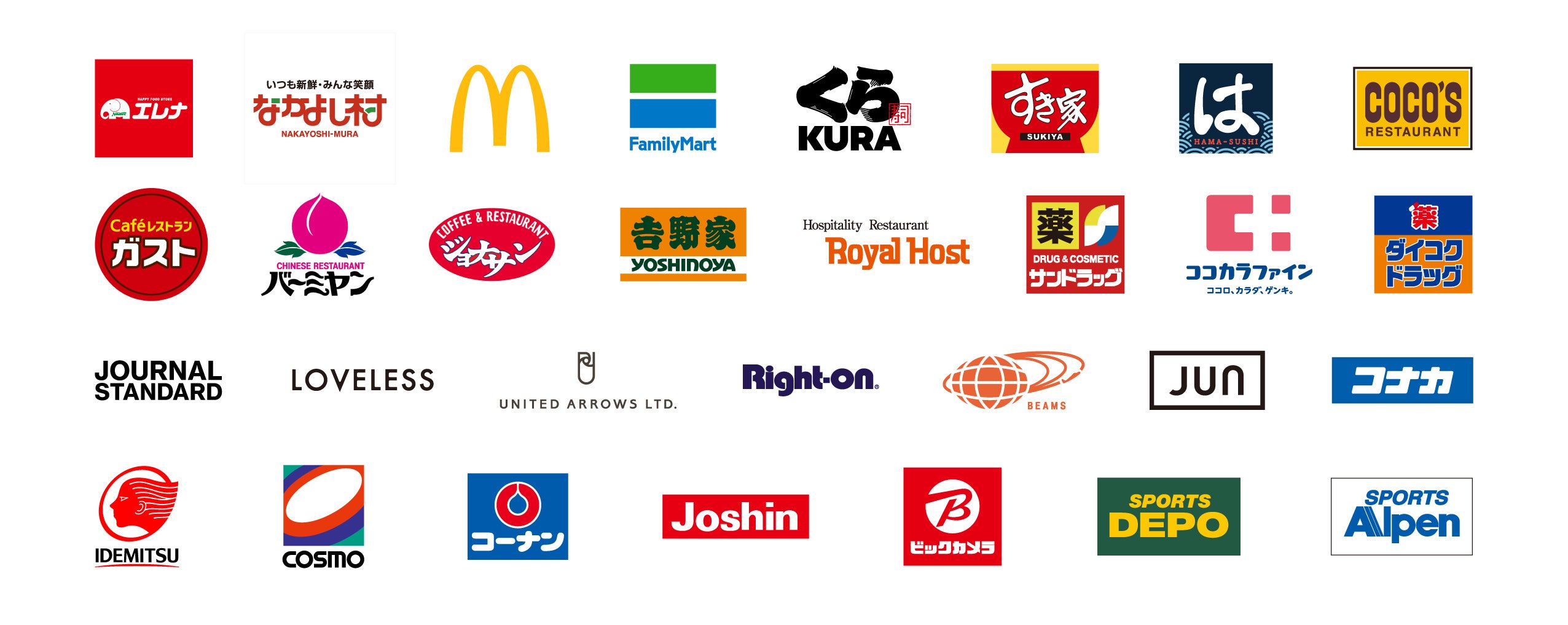 <楽天ポイントカード提携先一覧>(一部抜粋)