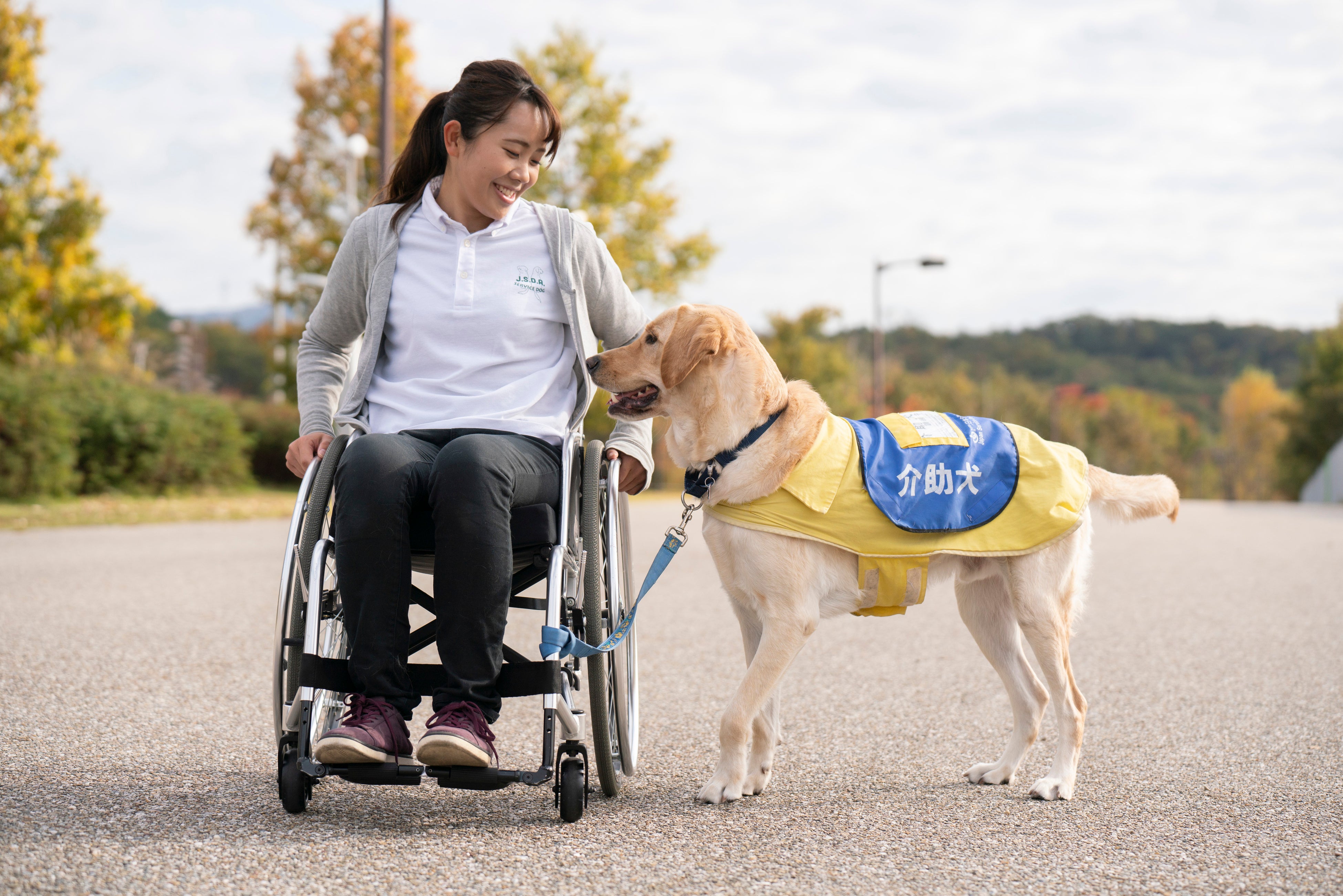 手足が不自由な方の手助けをする犬。落としたものを拾う、靴や靴下を脱がせる、携帯電話を持ってくるなど、その方にニーズに合わせて作業を行う。全国ではまだ58頭(2023年10月現在)しかおらず、認知度が低いことが課題。