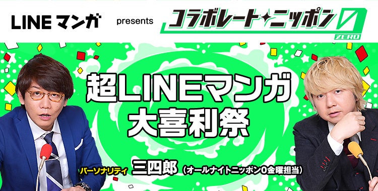 また、「オールナイトニッポン0(ZERO)」の中でお送りするコラボコーナー「コラボレートニッポン0」では番組内で「超LINEマンガ大喜利祭!」の開催や、「三四郎のオールナイトニッポン0(ZERO)」番組公式TwitterにてLINEマンガのオリジナル作品をオススメする「LINEマンガプレゼン動画」の公開を予定しています。