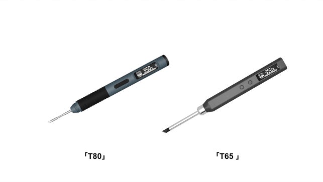 「T80」「T65」は、USB Type-C接続で電源供給可能な携帯性に優れたはんだごてで、本体にOLEDディスプレイを内蔵しており、温度設定や動作電圧設定、その他細かなパラメータ設定が可能です。専用のこて先も同時に販売開始します。