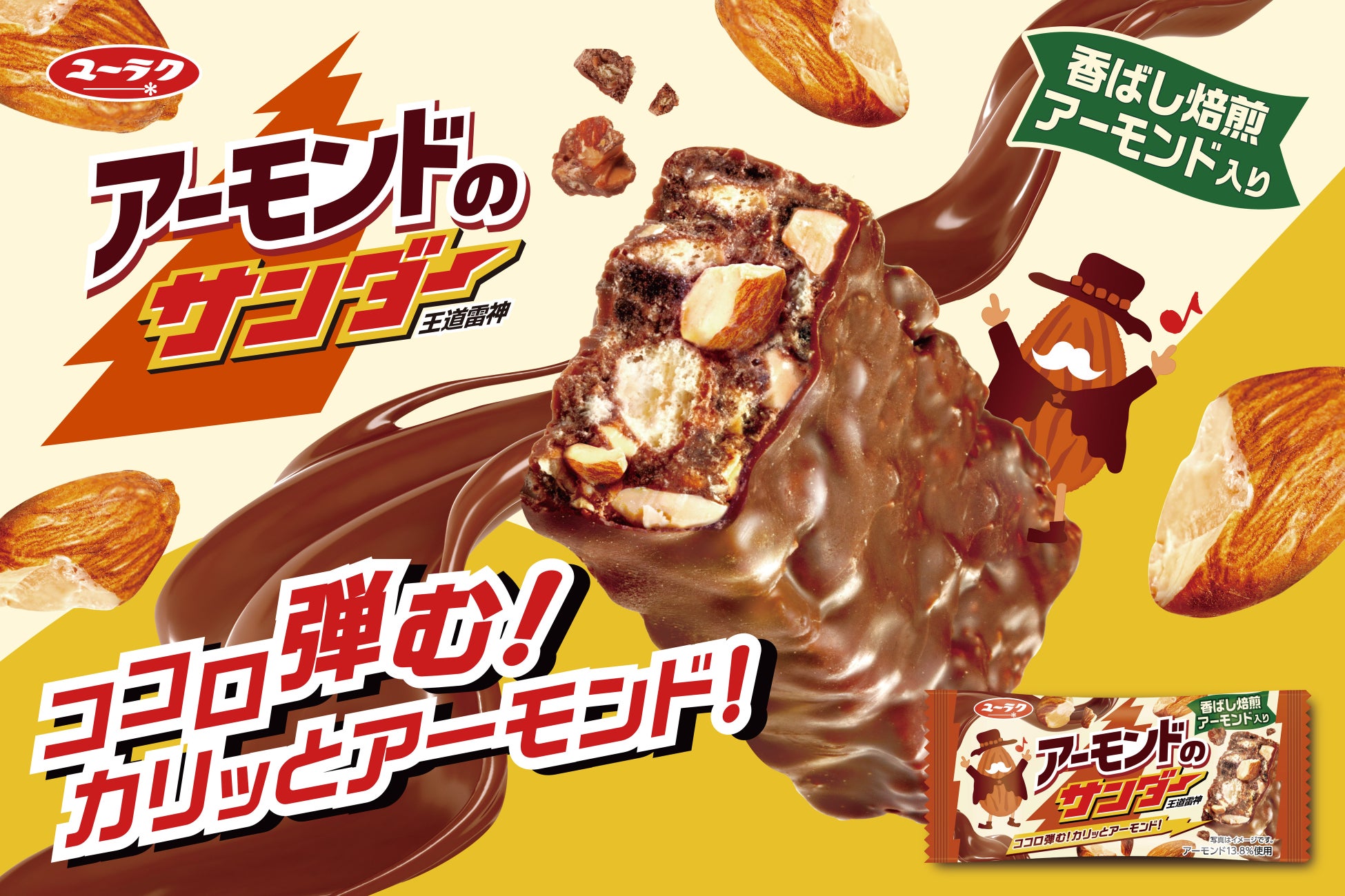 『アーモンドのサンダー』新発売!3種類のアーモンド原料使用!王道ナッツチョコバーが登場