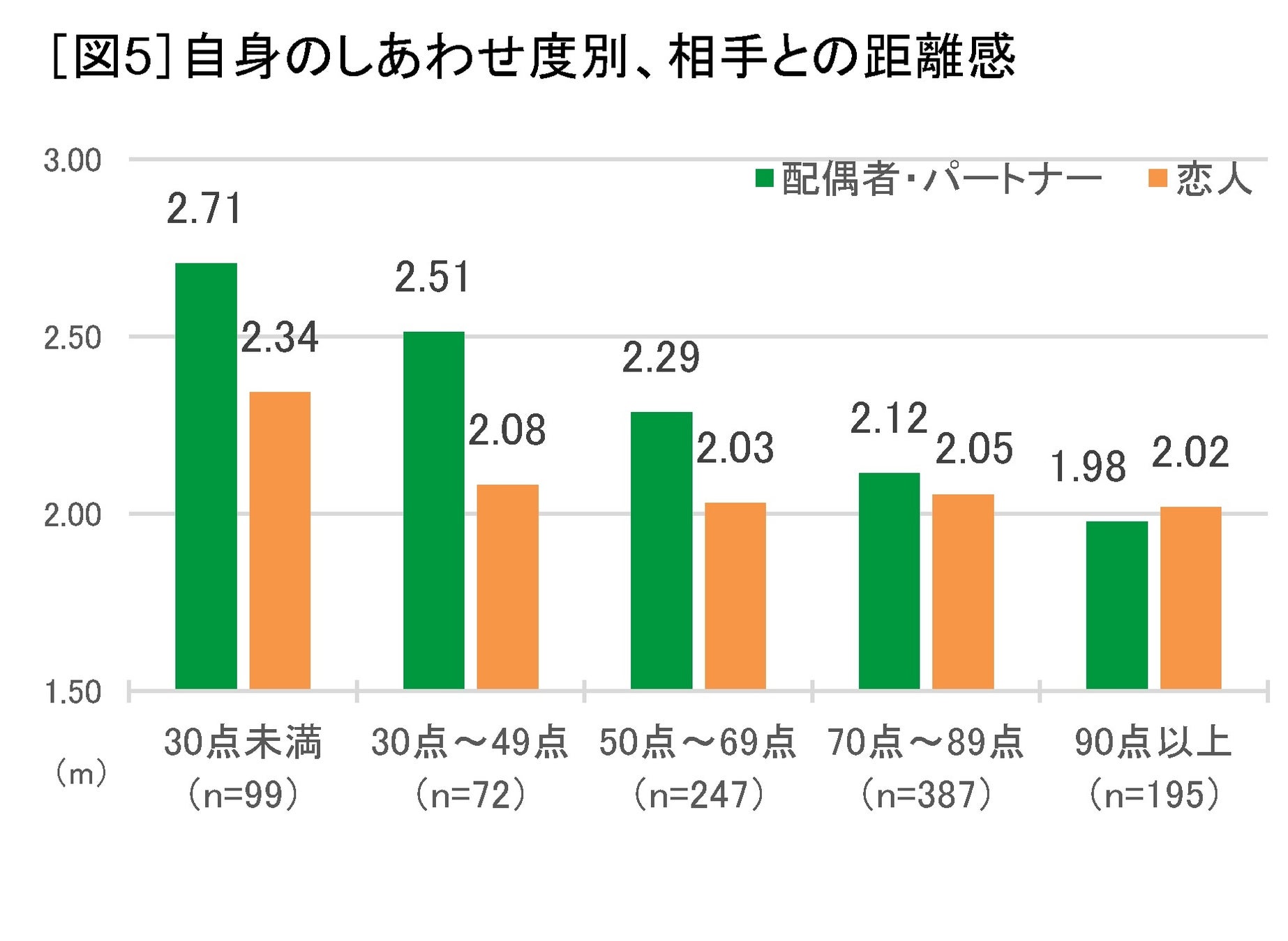 - しあわせを感じる相手とは距離感もぐっと近い ご自身の子ども1.79m、恋人は2.07m