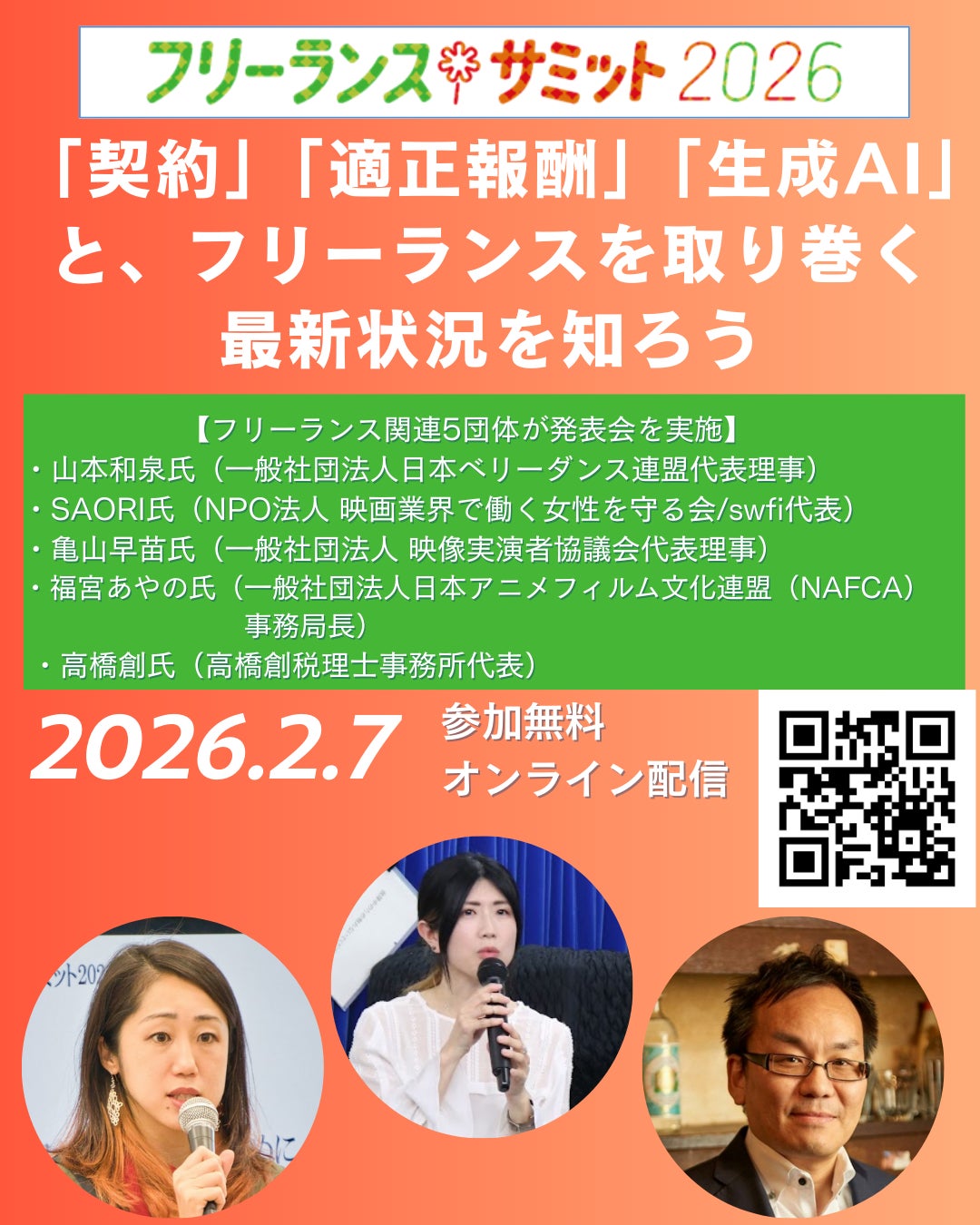 フリーランスサミット2026で、フリーランス関連5団体が発表会を実施 ~「契約」「適正報酬」「生成AI」と、フリーランスを取り巻く最新状況を知ろう~