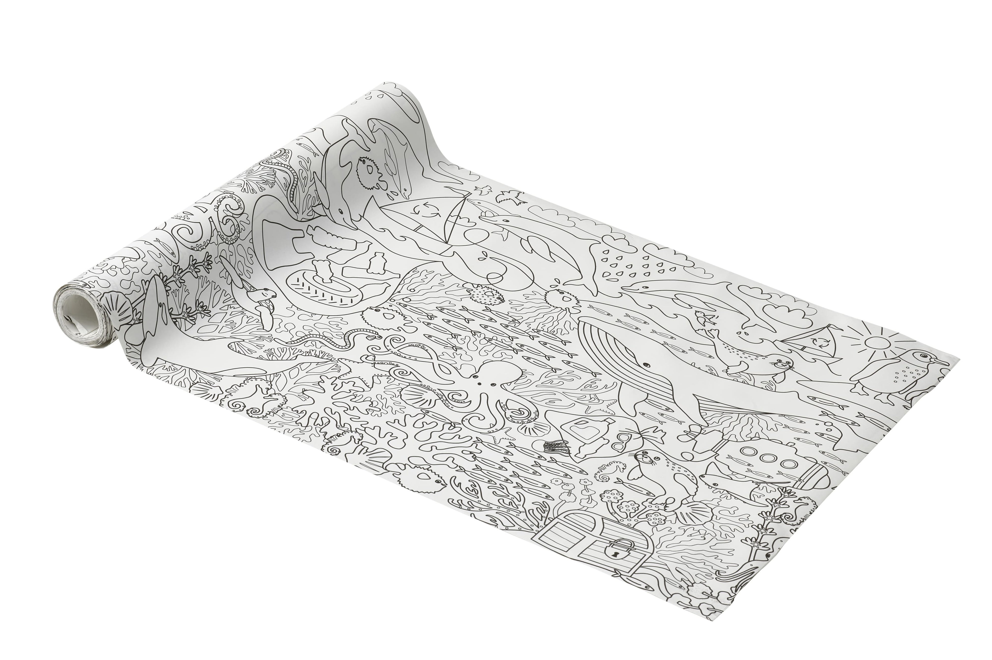 小さなアーティストにとって夢のような、細かいディテールと海洋生物であふれる10メートルの「ぬり絵本」。 ロール紙を引き出して、フェルトペンや水彩絵の具で色をつけましょう。