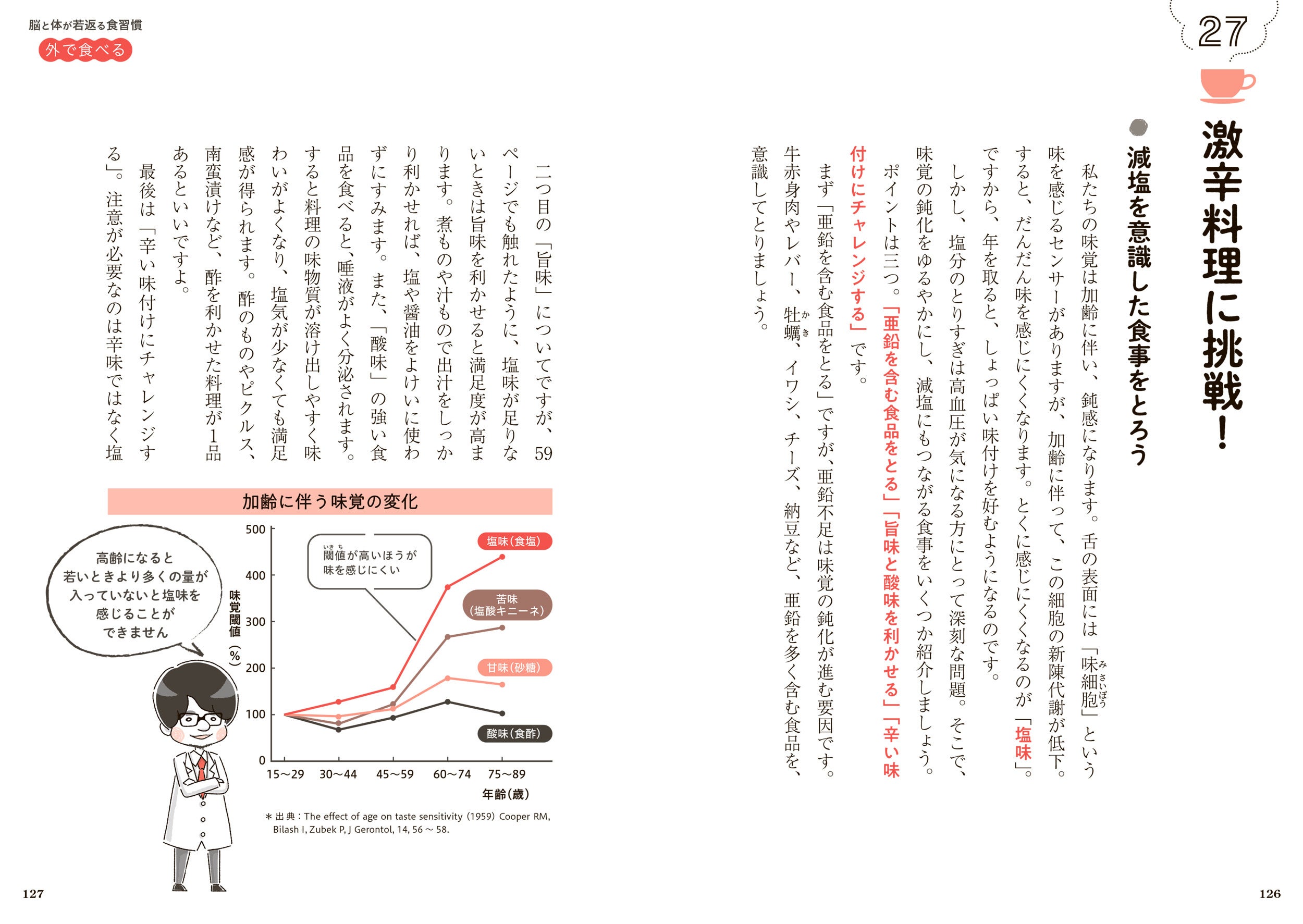 本書は食事を楽しみながら自分に必要なものを選択する知識が身に付く本です。健康な間食(おやつ)の取り方やファストフードの活用方法など、60代から70代の方に向けて、体にも心にも効く「食生活」に大切な心得や食事にまつわる日々の工夫を、30の項目に分けて掲載しています。