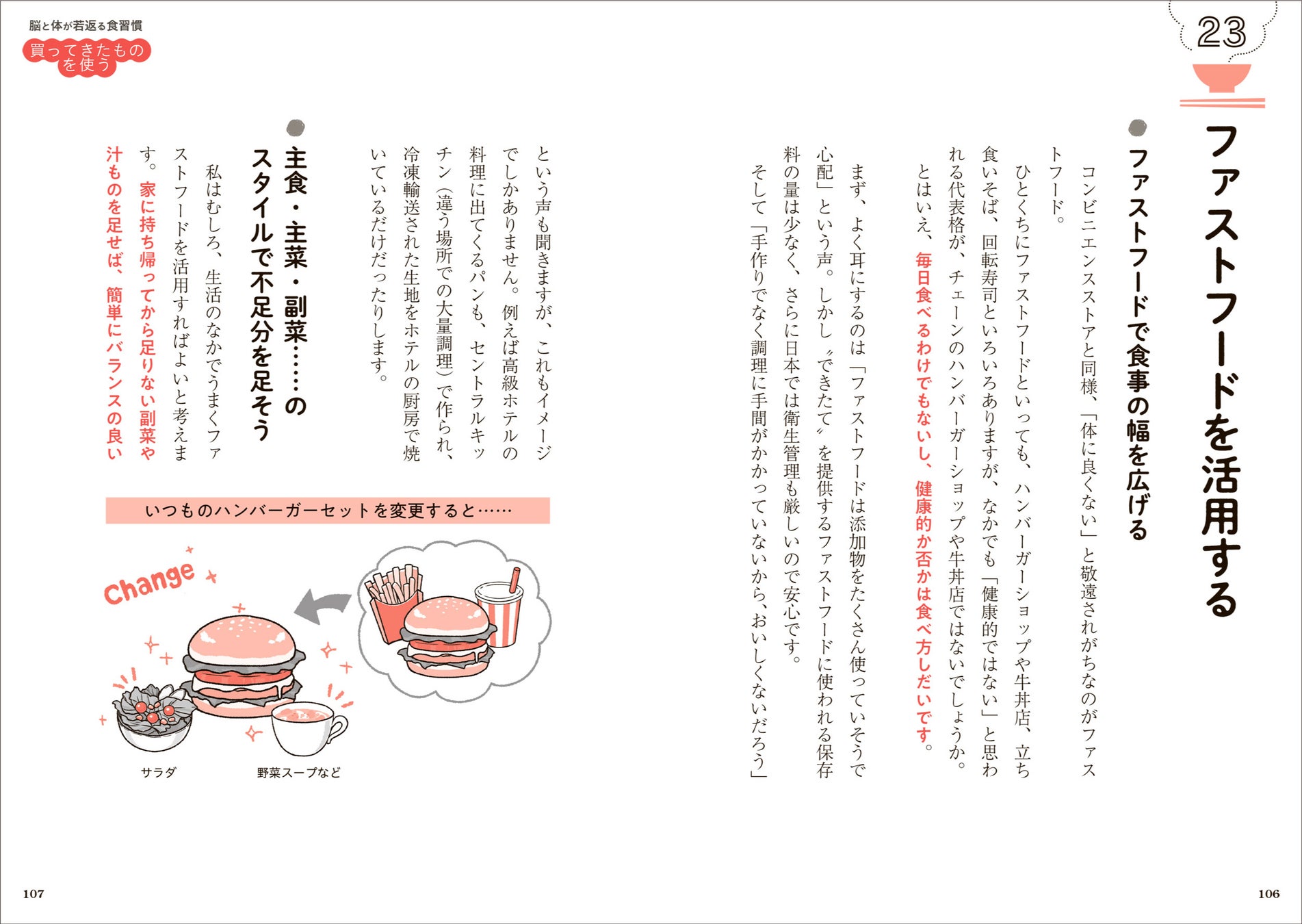 ファストフードやコンビニ食は体に悪いと思い込んでいる方もいますが、組み合わせ次第で健康的な食事になります。食べることを通じて日々の生活に変化をつけ、楽しみと満足感を得るのも食事の大切な役割です。