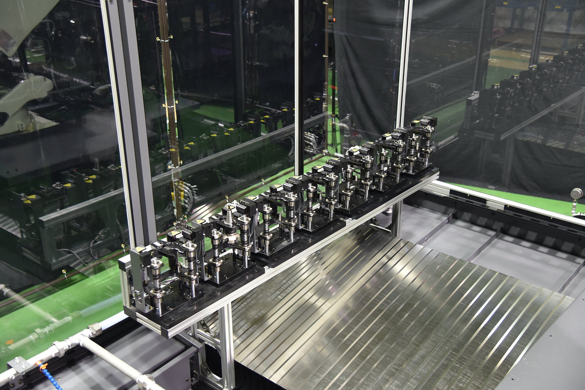 切削工具を自動で交換する仕組み。段取り替えの手作業を減らし、多工程の加工を自動化・省人化する。