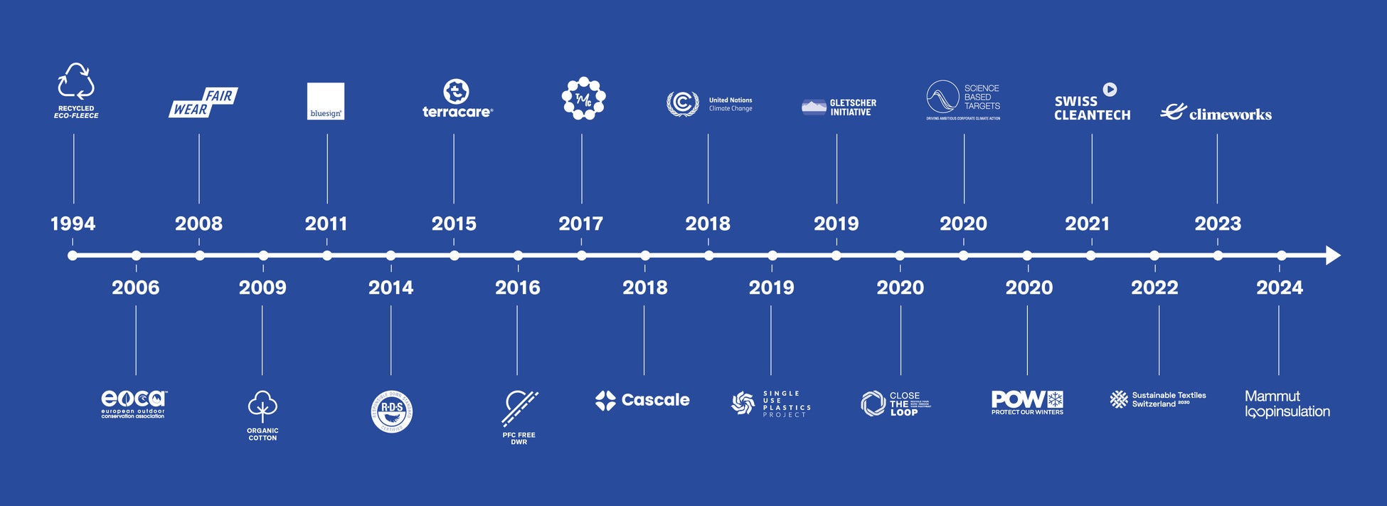 1994年のRECYCLED ECO FLEECEの使用から始まり、労働環境の改善、生産プロセスにおける環境配慮、環境保護団体との共同活動・協賛など様々な形で、自然環境の保護とアウトドアブランドの共存を実現しようとしています。環境と社会への責任は、2006年に初めて事業計画に盛り込まれました。近年では、業界の専門家や、Fair Wear Foundation、bluesign®、The Higg Indexといった外部監視システムやパートナー団体との連携を通じて、国際的なサプライチェーンにおける責任ある取り組みの課題に取り組んでいます。2018年には、国連の「ファッション業界気候行動憲章」の主要署名者として、気候危機を戦略目標の最優先事項に位置付けています。業界との連携や認証取得に加え、2023年にはClimeworksと提携し、炭素除去も導入しました。
