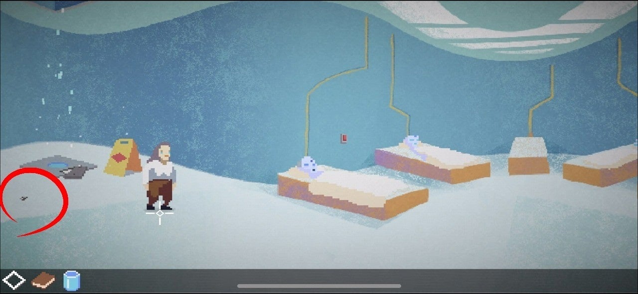 病室の左側にあるボルトはかなり小さく、iPhoneを使っている場合見つかりにくいことがあります。プレイしていて見つけられない場合は、スマホの上下を変えてみるのがおすすめです。
