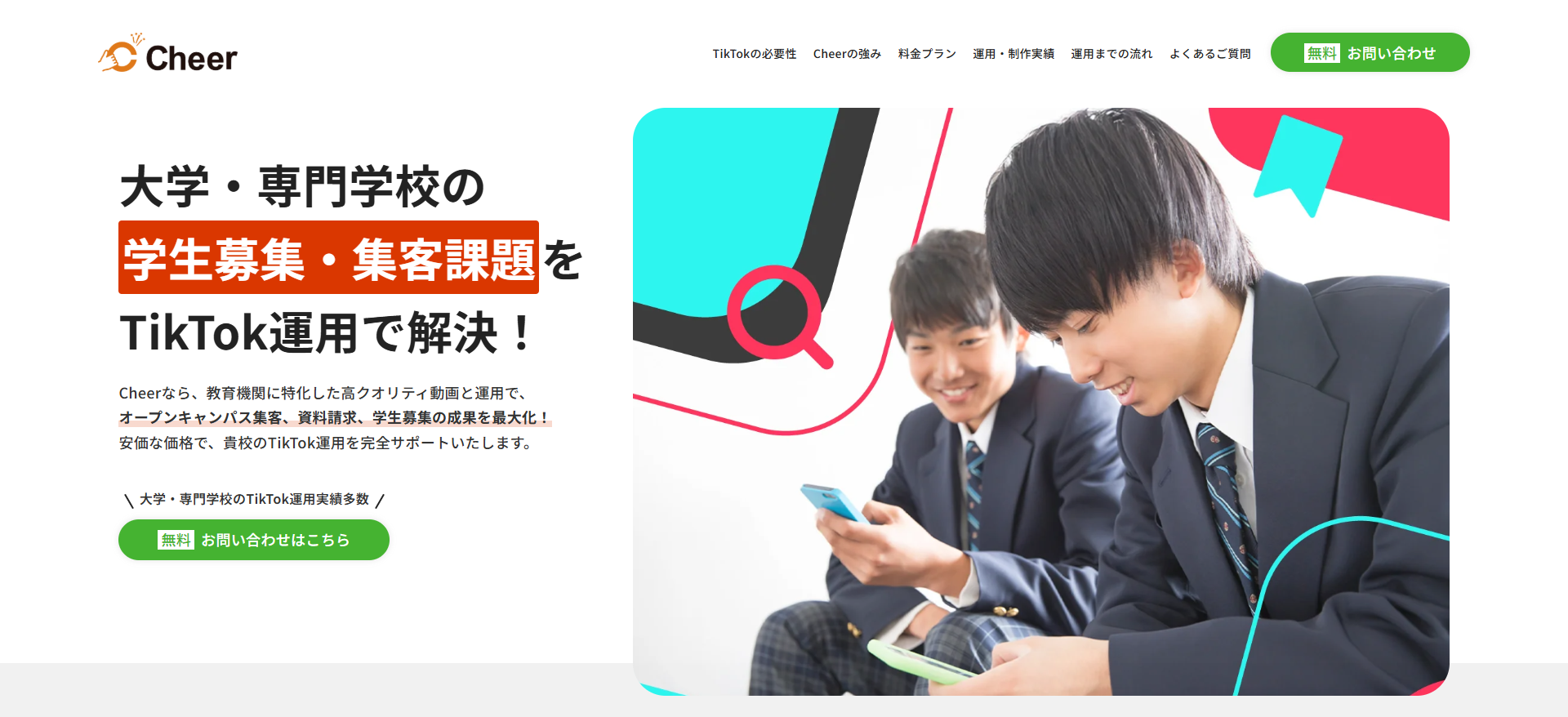 【Cheer】大学・専門学校向けTikTok運用で集客4割増!導入事例を公開